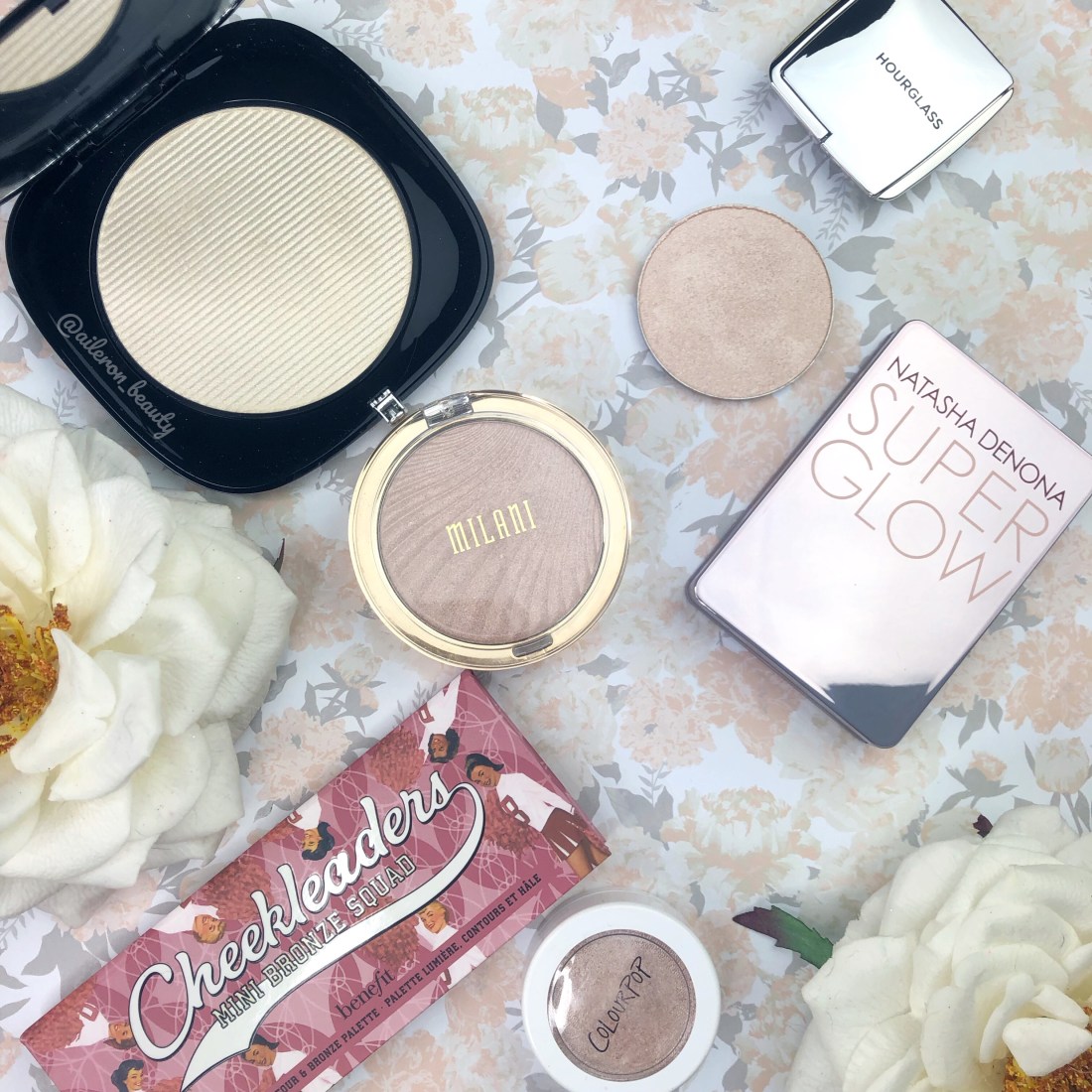 MILANI AFTERGLOW STROBELIGHT: I think this is an excellent accessible drugstore option. It has more glow factor than the Hourglass option but is still not over the top. It has a slight pink undertone.